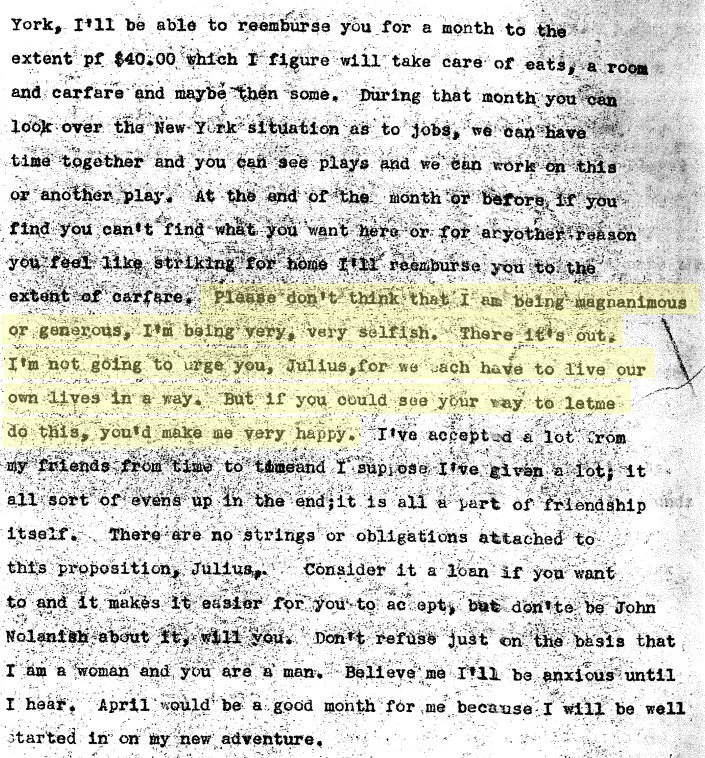 Julius advised Alice about career changes and she offered him hope in his job search. Alice almost moved to Utah. Julius bemoaned that he didn’t have the resources to come and meet Alice in New York.